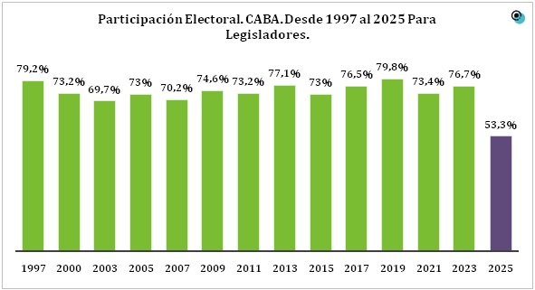 El caso singular de la baja participación electoral se vio el pasado domingo 18 de mayo en la Ciudad Autónoma de Buenos Aires, donde los porteños eligieron sus representantes legislativos, tuvieron una participación electoral de apenas el 53,3%, la más baja desde 1997.