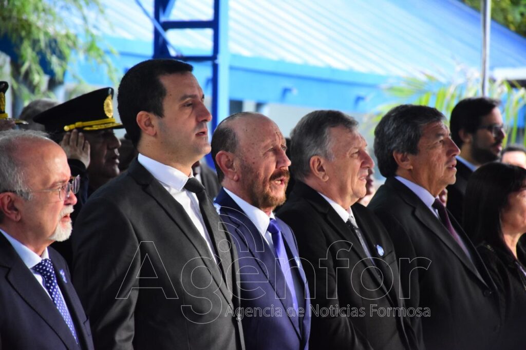 El intendente de Herradura, Ernesto Heizenreder, brindó un discurso en el acto de inauguración de las obras de refacción y ampliación de la Escuela Provincial de Educación Primaria N° 460 “Misión del Timbó” y de la construcción del Jardín de Infantes Nucleado N° 41–Satélite EPEP N° 460 del paraje La Playa, de esa localidad.