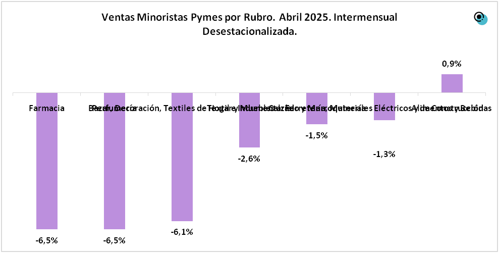 Al analizar las ventas minoristas en el mes de abril del 2025 de las pequeñas y medianas empresas en la comparación mensual desestacionalizada, observaron una contracción del 1,8%. Las ventas en el mes de abril estuvieron con márgenes muy reducidos por el alto costo de servicios, impuestos y alquileres.