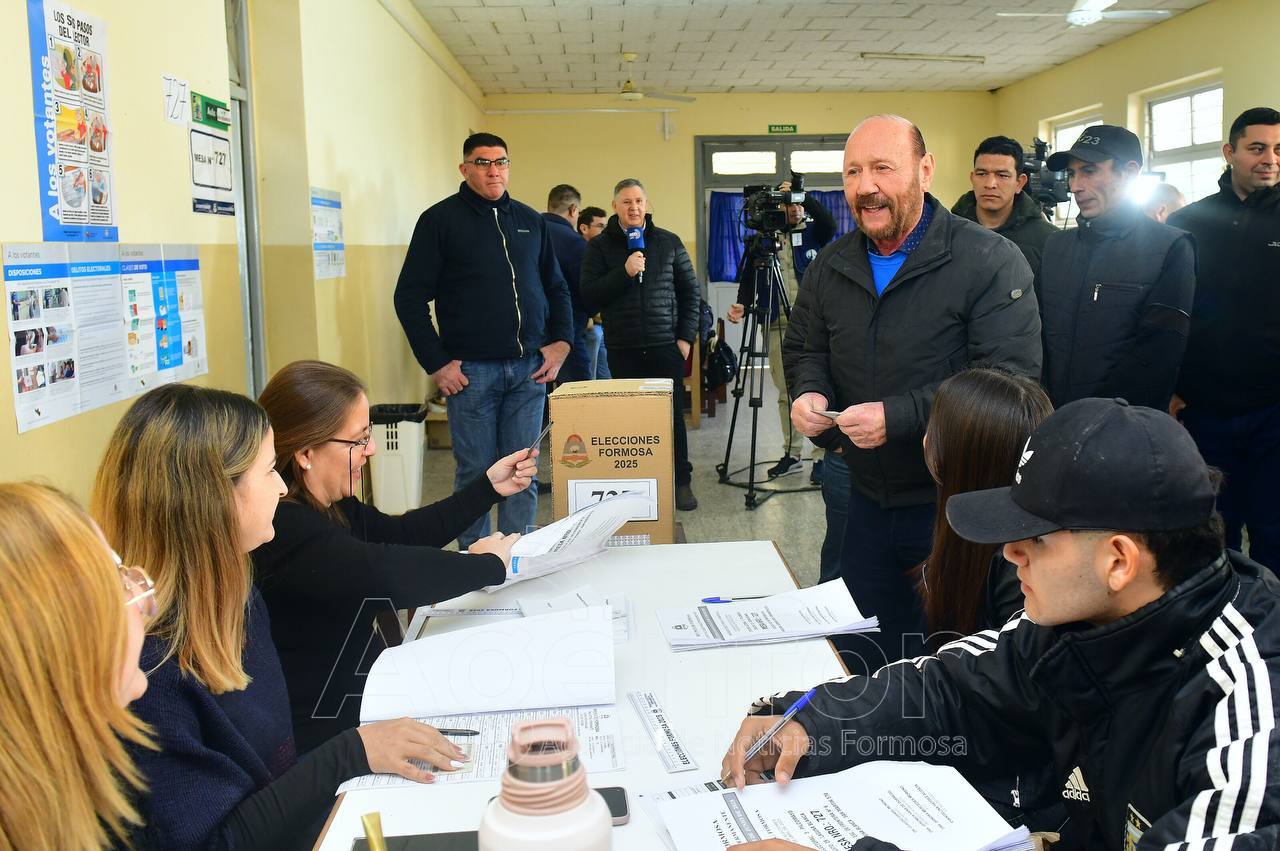 El gobernador de la provincia de Formosa, Gildo Insfrán, votó este domingo 29 en la mesa 727 de la Escuela de Frontera N° 6 “José Hernández” de la localidad de Laguna Blanca, distante a 140 kilómetros, en el norte provincial.