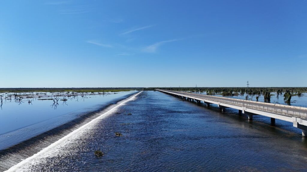 El humedal cumple un rol central en ese frágil equilibrio. Cuando el Bañado crece, inunda parte del campo y hace necesario mover los animales para poder sostener la producción. Por el contrario, cuando el agua baja, esa misma zona se convierte en un espacio clave para el ganado por la disponibilidad de pastizales naturales.