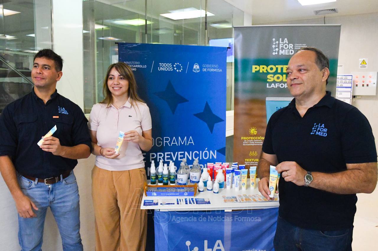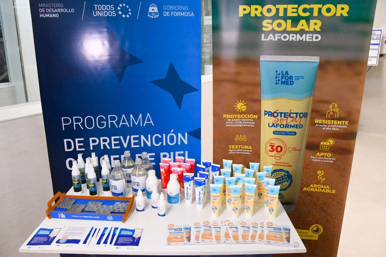 Este martes 7 de abril, a las 9 horas, en el marco del Plan Provincial de Prevención de Cáncer de Piel del Ministerio de Desarrollo Humano, el Laboratorio Provincial Laformed concretó la segunda entrega de protectores solares de producción propia.